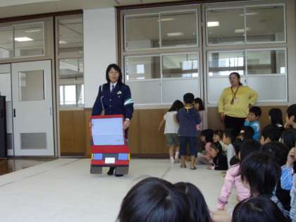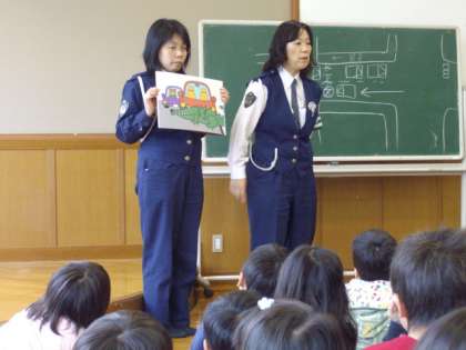 3時間目に,七条署から警察の方に来ていただいて,安全な歩き方や道路の横断のしかたを学習しました。