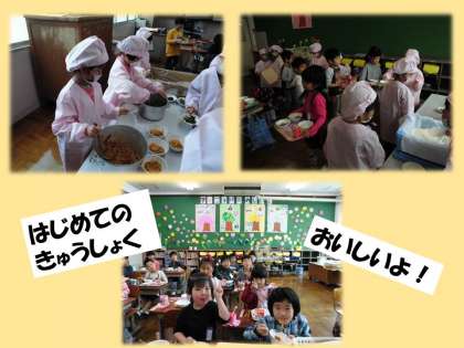 エプロンの着方,手の洗い方,給食の待ち方,給食の受け取り方など,たくさんのことを勉強しました。