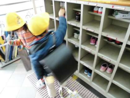 一年生が入学して10日ほど経ちました。初めの日にくつの入れ方を学習してから,みんなかかとをぴったりと揃えてくつを入れることができています。くつ入れ名人です。