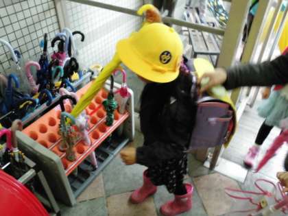 また,雨の日が続いていましたが,傘もしっかりとたたんでしまっています。傘入れ名人です。