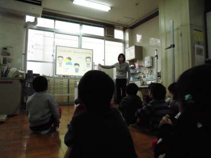 みんなで保健室に入り,養護教諭の早田先生のお話を聞きました。しんどくなったときやけがをした時には保健室にいきます。