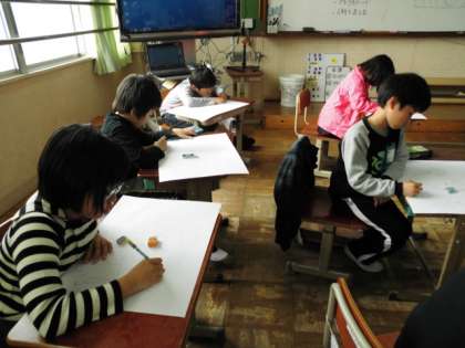 図工の時間に,心に残った出来事をそのときの気持ちが伝わるように工夫して絵に表しました。