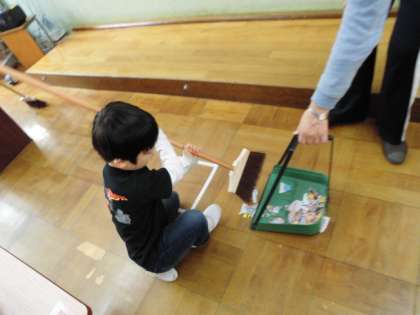 ほうきの使い方・ゴミの集め方を改めて学習し,