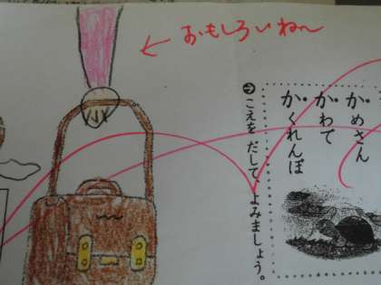 1年生の宿題に「ひらがなのプリント」があります。マス目や字形を意識して丁寧に書きます。