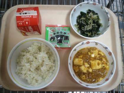 初夏のような日差しと気温の日でしたが,ちょっぴり辛いマーボ豆腐の味付けがごはんによく合い,食もすすみました。