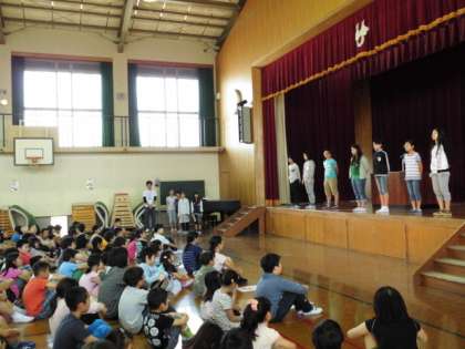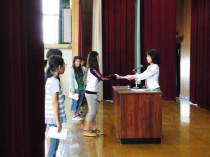 それぞれの委員会の委員長が全校のみんなに目標を宣言し,校長先生より任命書を渡していただきました。