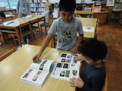 1年生にとって,初めて図書室を使いました。図書室にはたくさん本があったので,上級生が下級生と共に本を探していました。自分のお気に入りの1冊を見つけることができたようです。