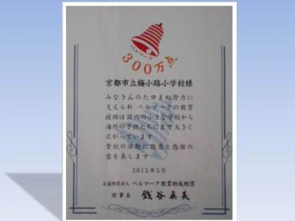 ベルマーク活動部の皆様を中心に,集めていただいた成果がこのような形で認めていただけました。