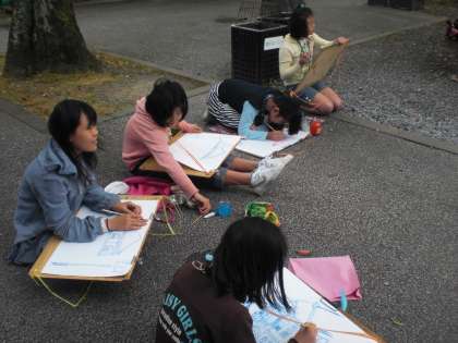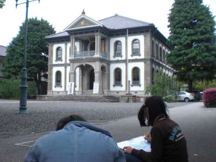 図工の学習で,龍谷大学の校舎の写生に出かけました。