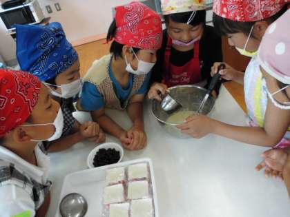 蒸しあがったものを冷やして,給食後のデザートとしておいしくいただきました。