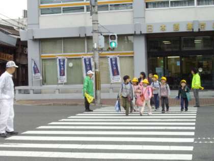 今日は,学校安全日。毎月15日を学校安全日としていますが,15日が土曜日のため,5月は今日が学校安全日です。朝の登校指導を校長先生・5年の先生がしました。学校の中も安全点検を行います。