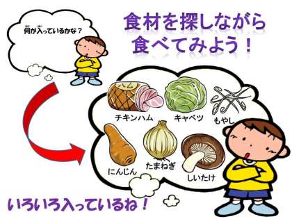 今日の「給食室からこんにちは」では,どんな食材を使っているのか,確かめながら食べました。