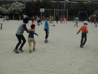 フレンドリー遊びで、1年生から6年生のお友だちと遊びました。お兄さんお姉さんはとっても優しかったので,初めてのフレンドリー遊びも楽しく各グループごとに過ごすことが出来たようです。