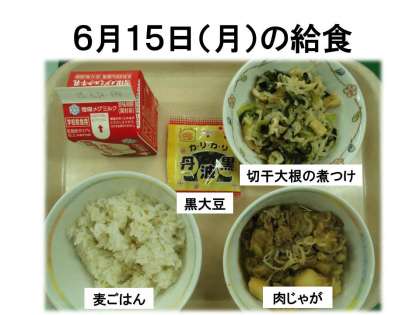 麦ごはん・牛乳・肉じゃが・切干大根の煮つけ・黒大豆です。