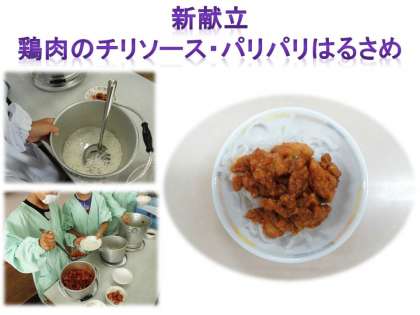 新献立の鶏肉のチリソース・パリパリはるさめ。