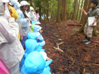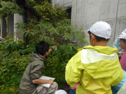 クイズを出していただきながら,ミツマタやマタタビ,サンショウなどの木を見たりにおいをかいだりしました。