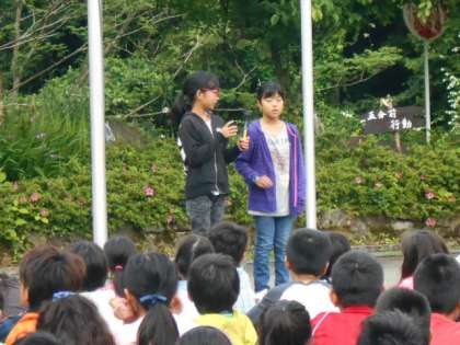 しっかりと元気に学校紹介をしました。