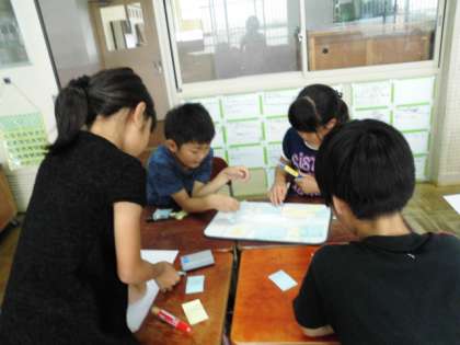 社会科でくらしとゴミの学習をしています。京都市のごみの量や処理の仕方,それにかかる費用などの学習を進めてきました。その中でゴミを減らさなければという意識が芽生えてきた子ども達。グループで今ゴミを0にする作戦を話し合っています。