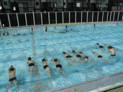 梅雨の合間のいい天気。久しぶりに暑い日になりました。水位も高くなり浮かんだりもぐったりの学習ができるようになりました。くらげ浮き,いるか泳ぎ,ふし浮き,けのびなどの学習をしました。バタバタも1年生のときより上手になっていました。