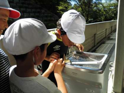 7月14日(火)動物園でお弁当を食べた後,午後から蹴上浄水場の見学に行きました。琵琶湖から送られてきた水が少しずつきれいになっていく様子に感嘆の声をあげていました。この夏一番の暑さを記録したこの日,余計に水の大切さを感じました。