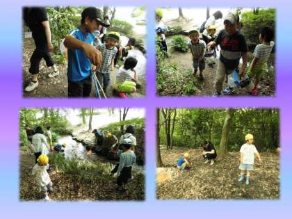 以前は釣りをしてザリガニ釣りをしましたが,今日はみんなの知恵と作戦と助け合いがあり,虫取り網と木の棒,そして自分のからだをつかって,ザリガニ・ミミズ・タニシ・をたくさん見つけました。