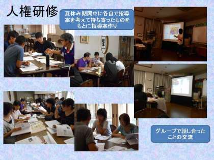 夏休みの間に,6年生の社会科の指導案を一人ずつ考えて持ち寄ります。それを基にグループで案を出し合い,一つにしていきます。