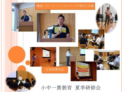 全体会では,スクールソーシャルワークの視点と支援というテーマで講演会がありました。その後,「生徒指導」「外国語活動」「道徳」の3分科会に分かれて研修を行いました。