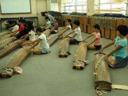 今,音楽部ではお琴の練習をしています。この日,新しい曲に挑戦しました。「越天楽今様」です。ゆったりとした曲ですが,音がとぶところがあり,何度も何度もくりかえし練習しました。初めて演奏する曲でしたが,先生に教えていただいて,最後まで通せました。今度は,もっと自信をもって演奏できるようにしたいです。