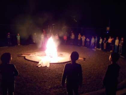 遠き山に火は落ちてで,火の神と火の子が入場してファイヤーの神聖な火をともしてくれました。