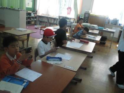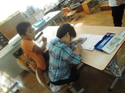 お買い物学習にむけて,電卓で大きな数の計算をしています。たくさんの商品を計算するときに,電卓で計算すると,とってもはやくお金の計算ができることがわかりました。