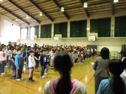 朝休みや放課後に陸上部が厳しい練習をしていることは,みんなよく知っています。大文字駅伝予選会に出場する選手に向けて,全校でエールを送りました。