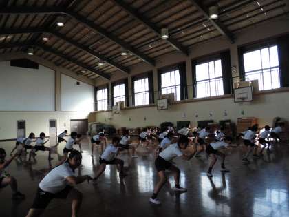 「ソーラン節って何?」から始まった練習。最初は動きを覚えることで精一杯でした。練習を重ねるごとに,声を出すことや,腰をしっかり落とすこと,指の先まで動きにこだわることなど大事なポイントを考えられるようになっていきました。