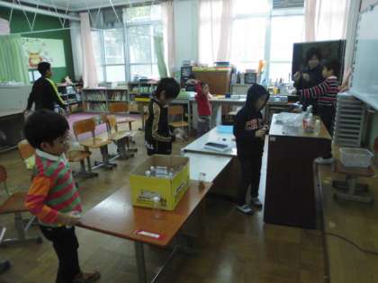 自分でオリジナルの楽器を作って,みんなで音を楽しみました。