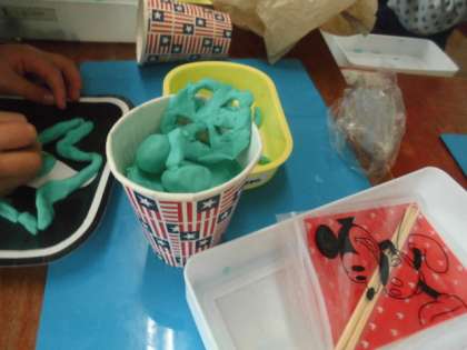 図工科の学習です。好きな食べ物を思い浮かべて,工夫しながら作りました。