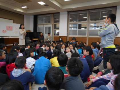校長先生のお話の中では,「優しく勉強をみてくださったスタッフさん」「困った時はすぐに助けてくださったスタッフさん」「一緒にがんばった友だち」等々に感謝し,「ありがとう」を言う相手を自分の心に浮かべました。そして,みんなで「ありがとうございました」と言いました。
