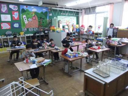 今日は,交流学級で給食を食べるお友だちも,6年生のお祝いのため,うぐいす学級の教室で給食を食べることにしました。