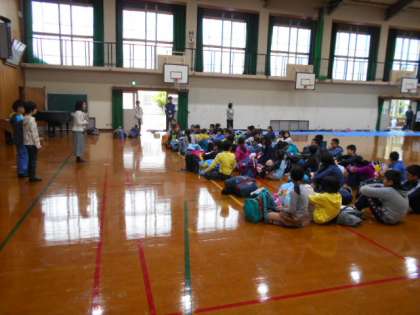 4月28日(木)7時17分, 6年生43名は,出発式を終えて淡路島へ出発しました。