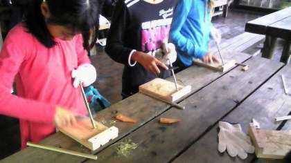 小刀を使って竹を削るのは難しかったようですが,一生懸命に削っていました。