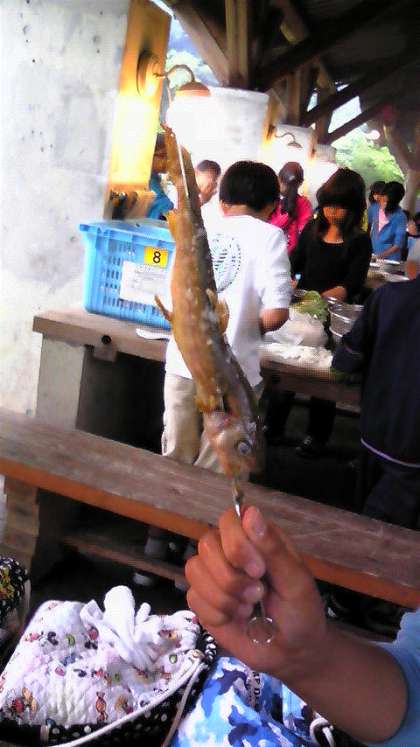 朝に掴んだ魚の調理をし,内臓も無事に取り出せ,炭でしっかりと焼けました。新鮮な魚の塩焼きはとっても美味しかったです。