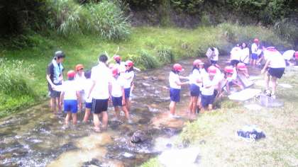 水は少し冷たいですが、子ども達は水生昆虫を一生懸命に探していました。
