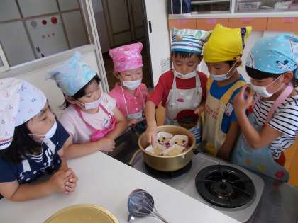 互いに役割分担をして調理をして,安全にかつ楽しく活動し,美味しい水無月の完成です。