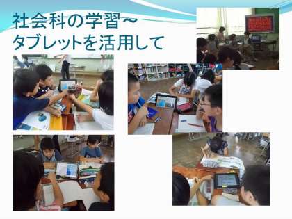 5年生では,タブレット端末を用いて梅雨・台風・季節風についてのまとめです。