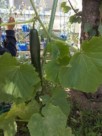 うぐいす学級の畑で育てていた「トマト」と「キュウリ」。今日,今年はじめての収穫をしました。先週の金曜日までは,トマトの実はまだ青く,キュウリの実もまだ小さかったのですが,今朝見ると,トマトの実は赤く,キュウリの実も大きくなっていました。野菜の苦手な子どもたちも,収穫する喜びを通して,少しでも野菜を好きになってくれるといいなと思います。