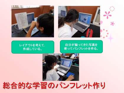 総合的な学習で調べてきていることについてパンフレットの形でまとめています。