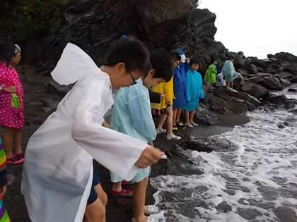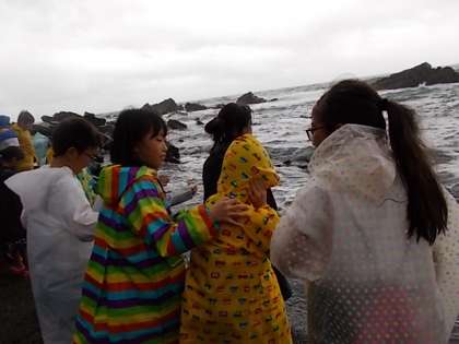 浜での活動の時は,雨にあたらず波しぶきを楽しみました。