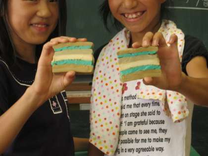 今日,理科の学習で粘土で地層作りをしました。中にはこだわって,小石を入れたり,化石を入れたりしているグループもありました。最後に,みんなの前で切って,各グループのこだわりを発表しました。グループそれぞれに工夫が見られ,地層の断面を見るたびに「すごい。」と驚きの声をあげていました。とても楽しかったようです。