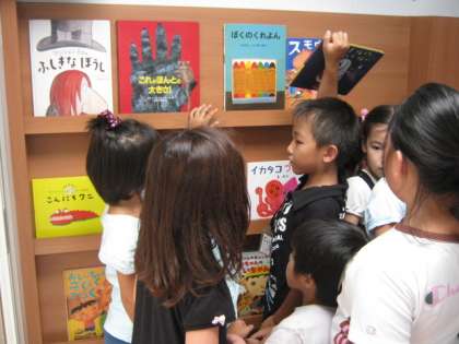 9月15日(水),梅小路小学校の運動場に「お話キャラバンカー」がやってきました。2年生は,キャラバンカーの中に入り,たくさんの本に囲まれながら素敵な本を手にとって喜んでいました。その後,多目的室に移動し,大型紙芝居を楽しみました。たくさんの本と親しむことができました。