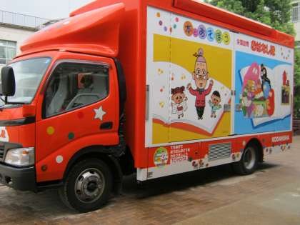 全国を回っているキャラバンカーです。車全体にお話の登場人物が描かれていて,ドアが開く前からワクワクドキドキです。