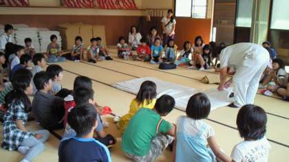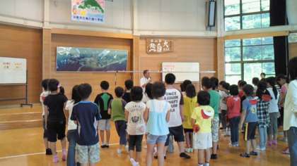 大きな声で校歌を歌い、頑張って作った旗を揚げました。あいさつも堂々としていて、出発のときより気持ちが引き締まったような表情が見られました。さぁ、始まります!