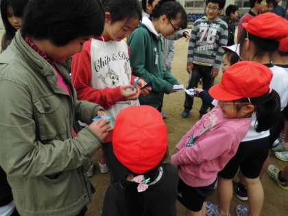 自分たちで6年生にお願いに行き,中間休みに行うことができました。始めは,6年生対1年生。次はミックス。ますます6年生のすごさを感じた1年生でした。